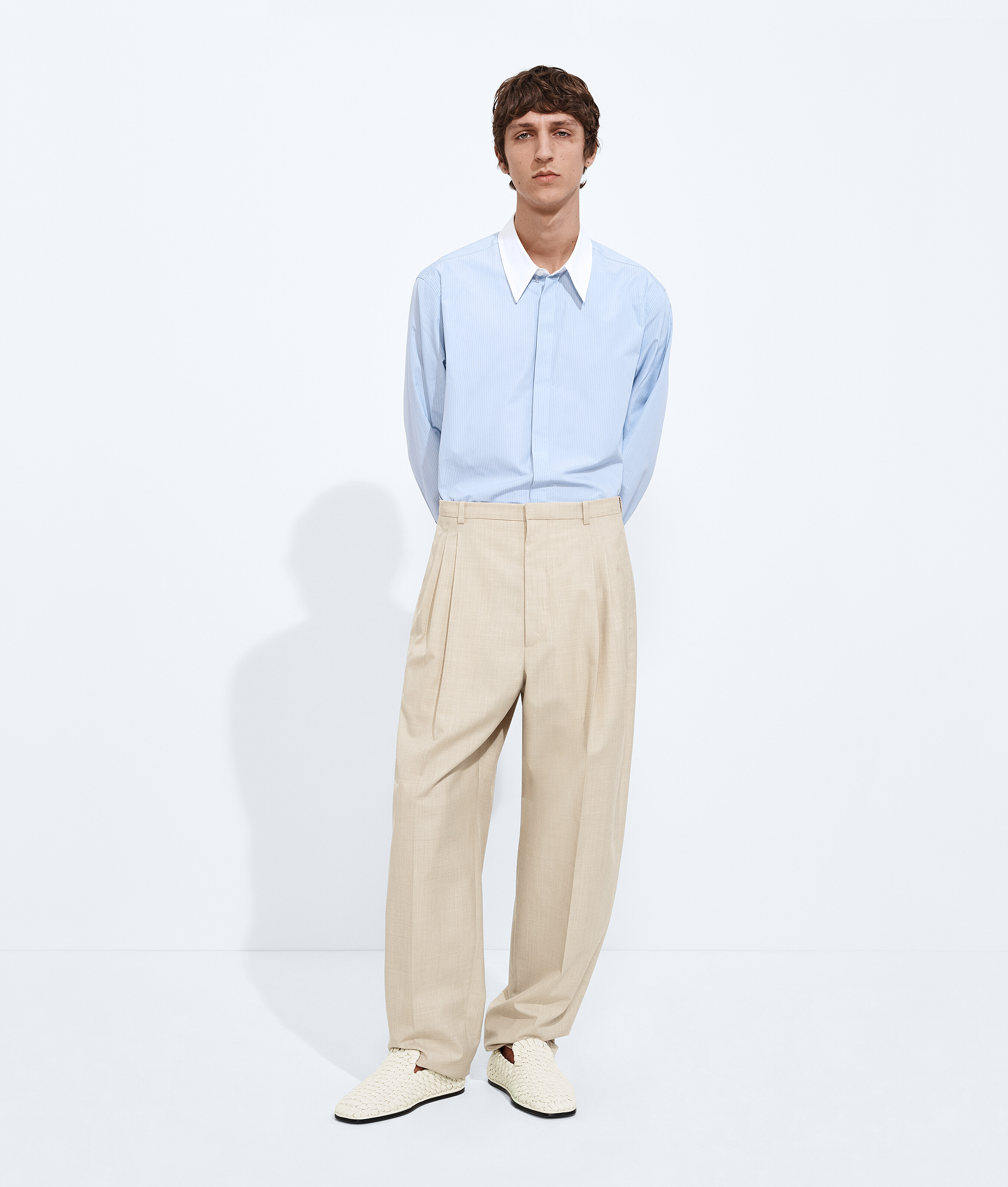 Pantalon ample fuselé en laine légère en gabardine de coton.