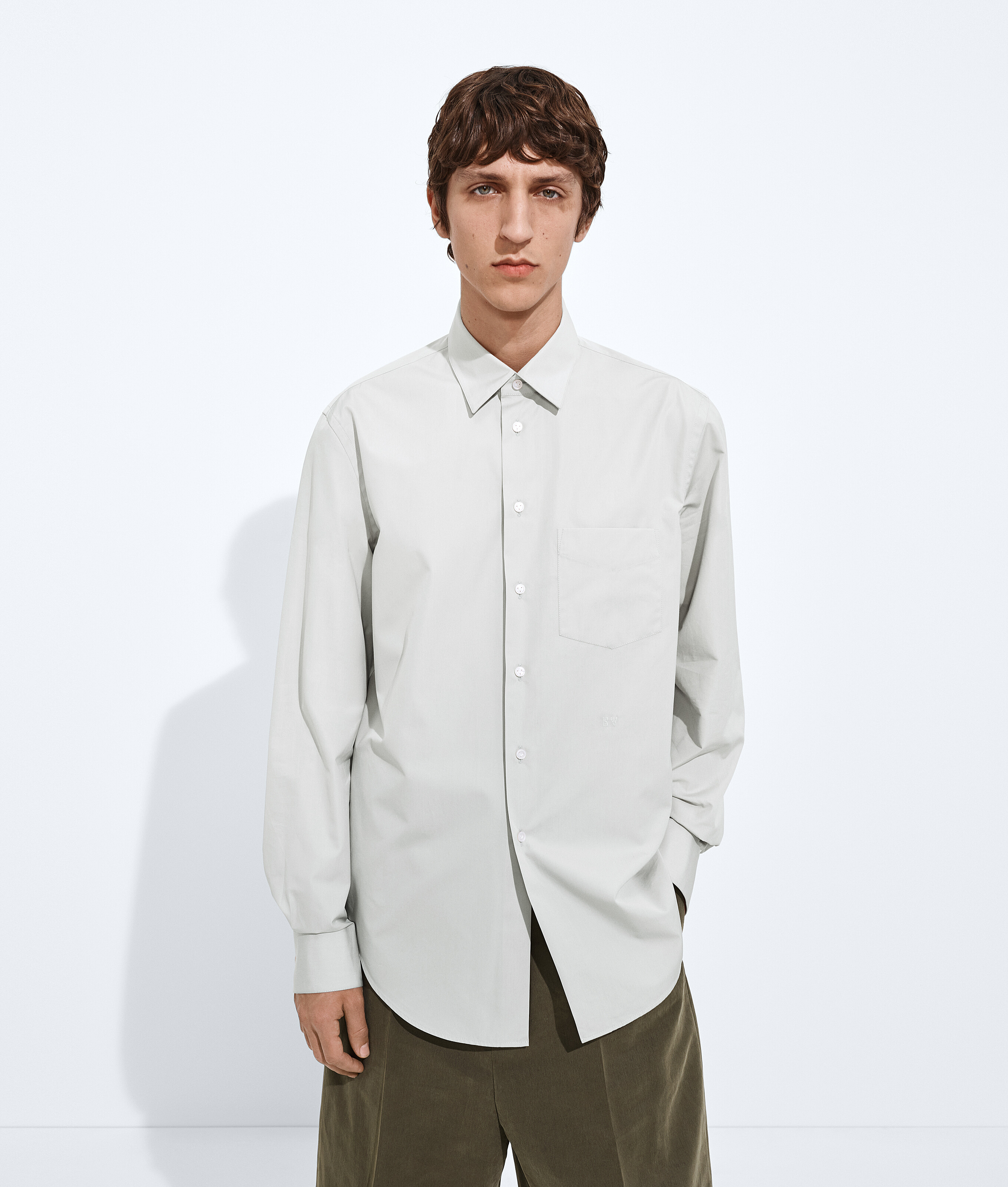 Chemise en popeline de coton classique avec broderie de la Maison sur le devant.