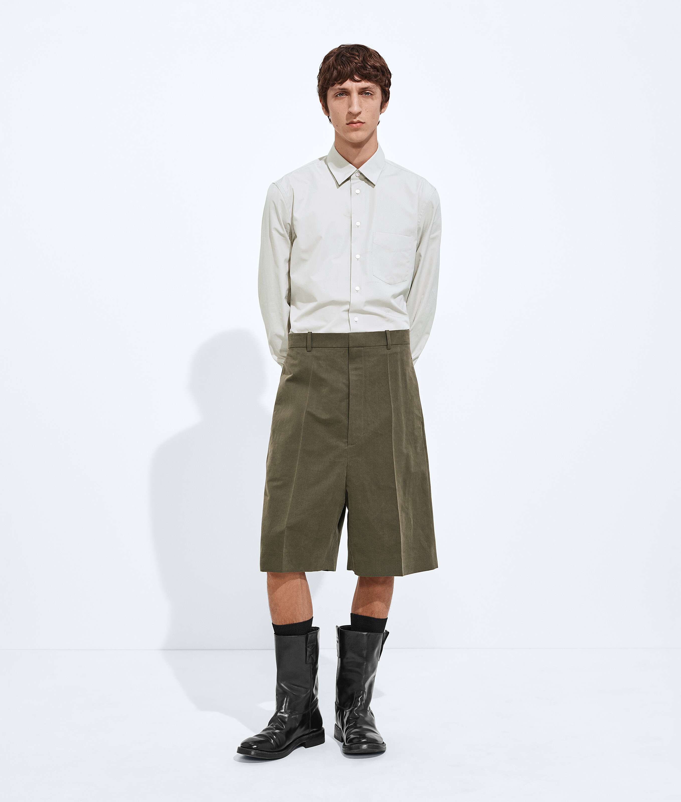 Short ample en coton et soie à fini plissé.