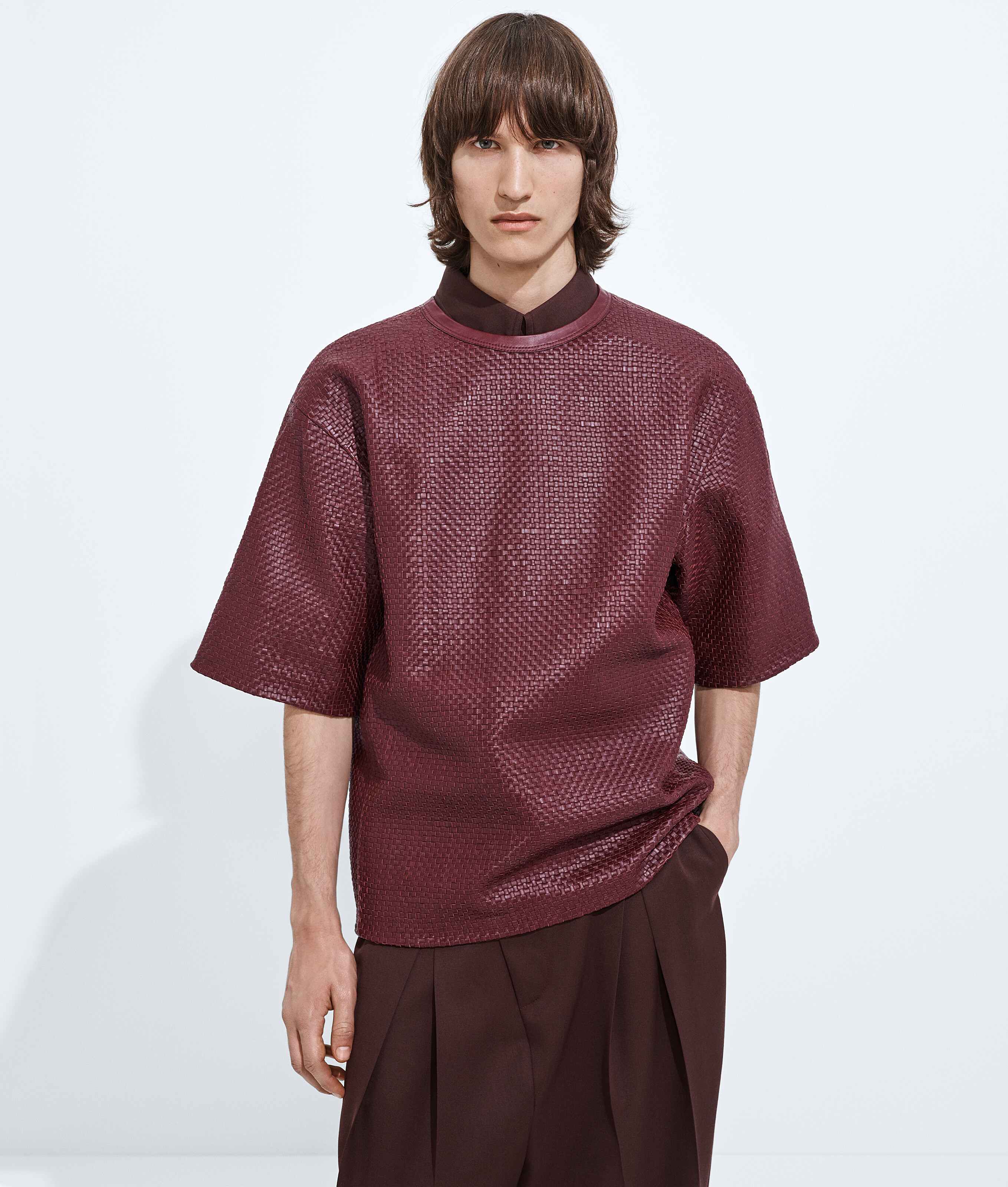 T-shirt en cuir doux mini Intrecciato.