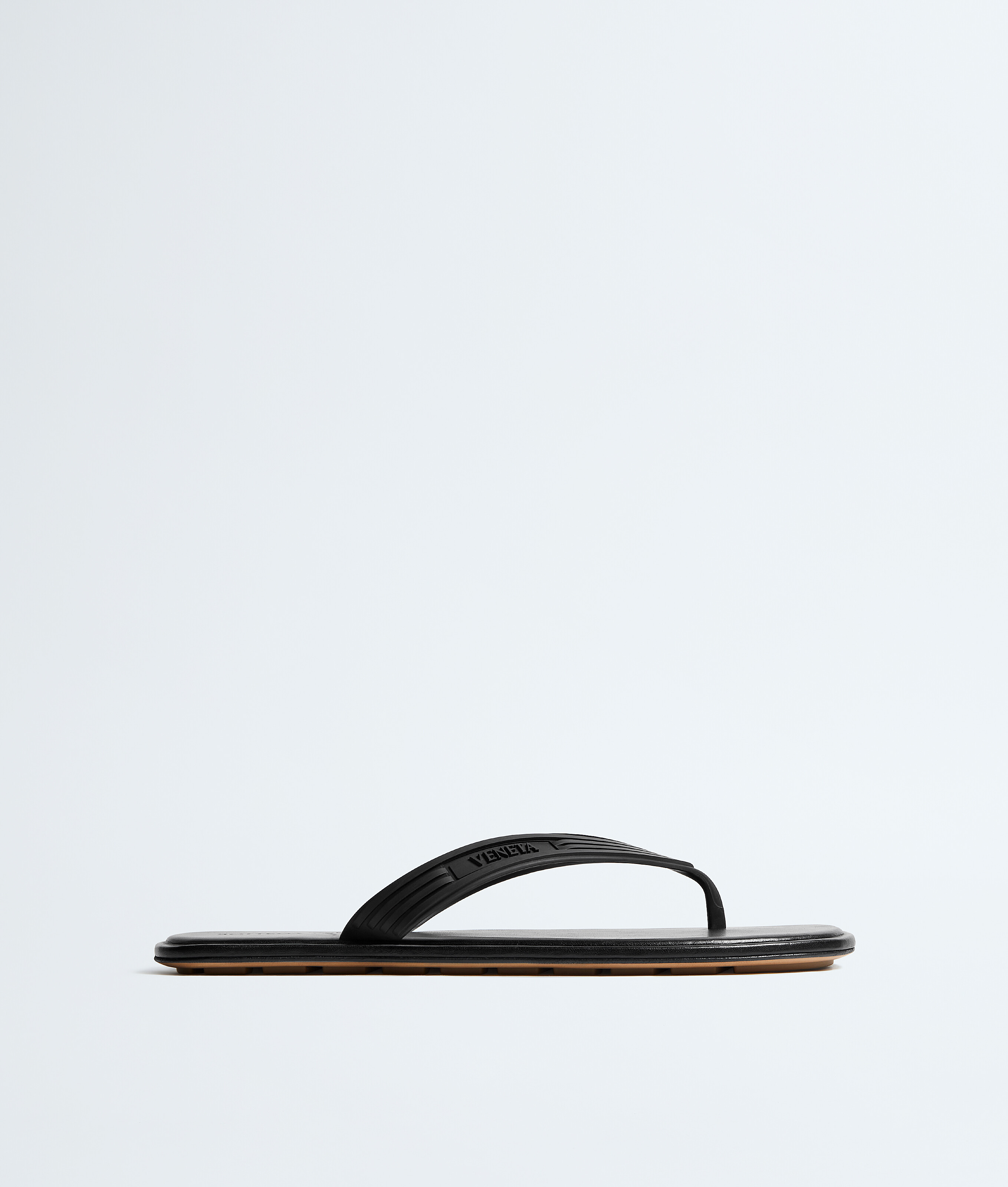 Tong plate en caoutchouc mat avec semelle intérieure en cuir nappa doux.